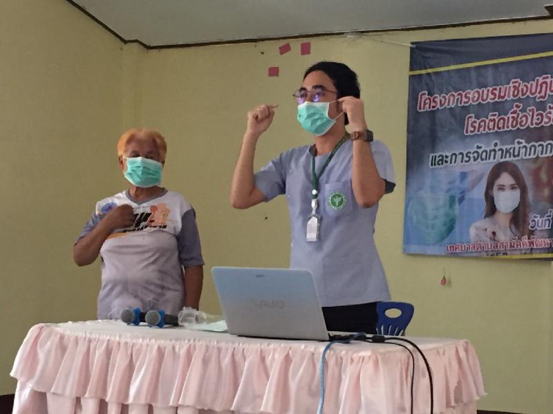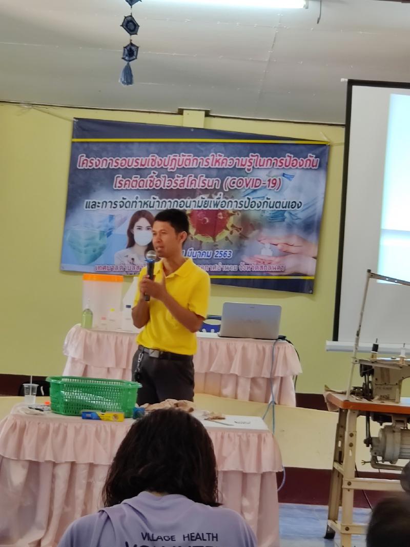 รายละเอียด : โครงการอบรมเชิงปฏิบัติการให้ความรู้ในการป้องกันโรคติดเชื้อไวรัสโคโรนา 2019 (COVID-19) และการจัดทำหน้ากากอนามัยเพื่อการป้องกันตนเอง ตำบลสามัคคีพัฒนา จัดกิจกรรมในวันที่ 11 มีนาคม 2563 กลุ่มเป้าหมายในกลุ่มผู้นำชุมชน อสม. จิตอาสา และประชาชนทั่วไป จำนวน 80 คน โดยมีกิจกรรม