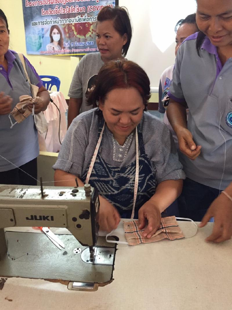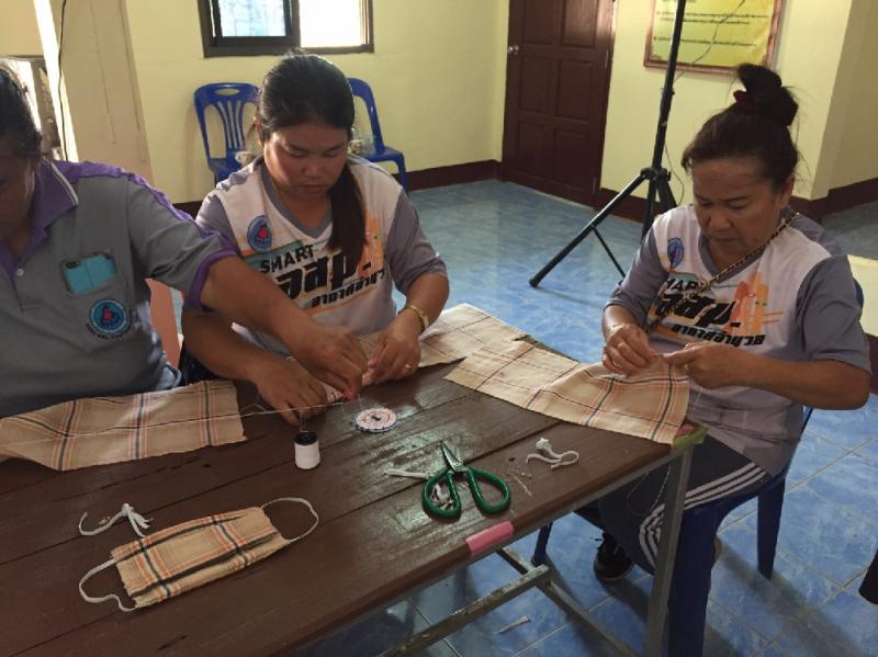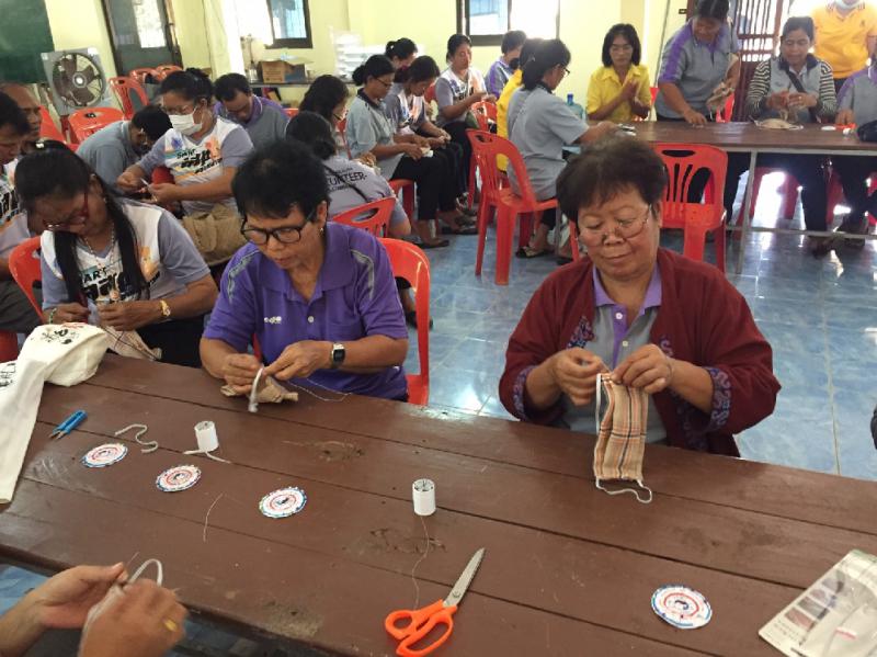 - ให้ความรู้และฝึกปฏิบัติการทำหน้ากากผ้า