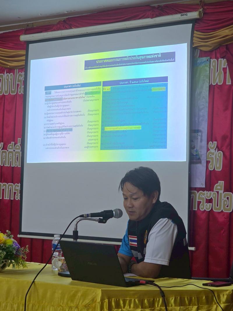 รายละเอียด : นายเสถียร แก้วบัวสา นายกเทศมนตรีตำบลสามัคคีพัฒนา เป็นประธานพิธีเปิดโครงการอบรมพัฒนาศักยภาพการบริหารจัดการ กองทุนหลักประกันสุขภาพ เทศบาลตำบลสามัคคีพัฒนา ปีงบประมาณ 2568 วันที่ 10 กันยายน 2568 ณ ห้องประชุมเทศบาลตำบลสามัคคีพัฒนา โดยมีกิจกรรมอบรมให้ความรู้ชี้แจงแนวทางการดำเนินงานกองทุนหลักประกันสุขภาพ ตามประกาศคณะกรรมการ หลักประกันสุขภาพแห่งชาติ เรื่อง หลักเกณฑ์เพื่อสนับสนุนการดำเนินงานกองทุนหลักประกันสุขภาพในระดับท้องถิ่น หรือพื้นที่ พ.ศ.2567, การจัดทำแผนสุขภาพชุมชน ปี 2569, หลักการเขียนโครงการ, การแลกเปลี่ยนเรียนรู้ปัญหาอุปสรรคการดำเนินงานกองทุน