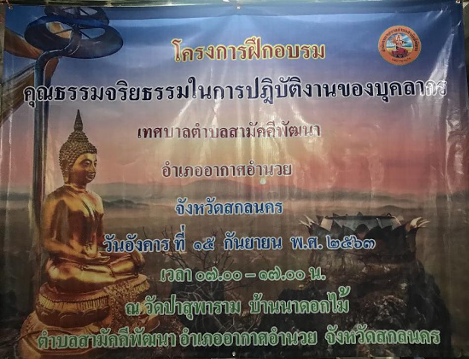 โครงการฝึกอบรมคุณธรรมจริยธรรมในการปฏิบัติงานของบุคลากร ประจำปีงบประมาณ พ.ศ.2563 (16 ภาพ) [15 กันยายน 2563]