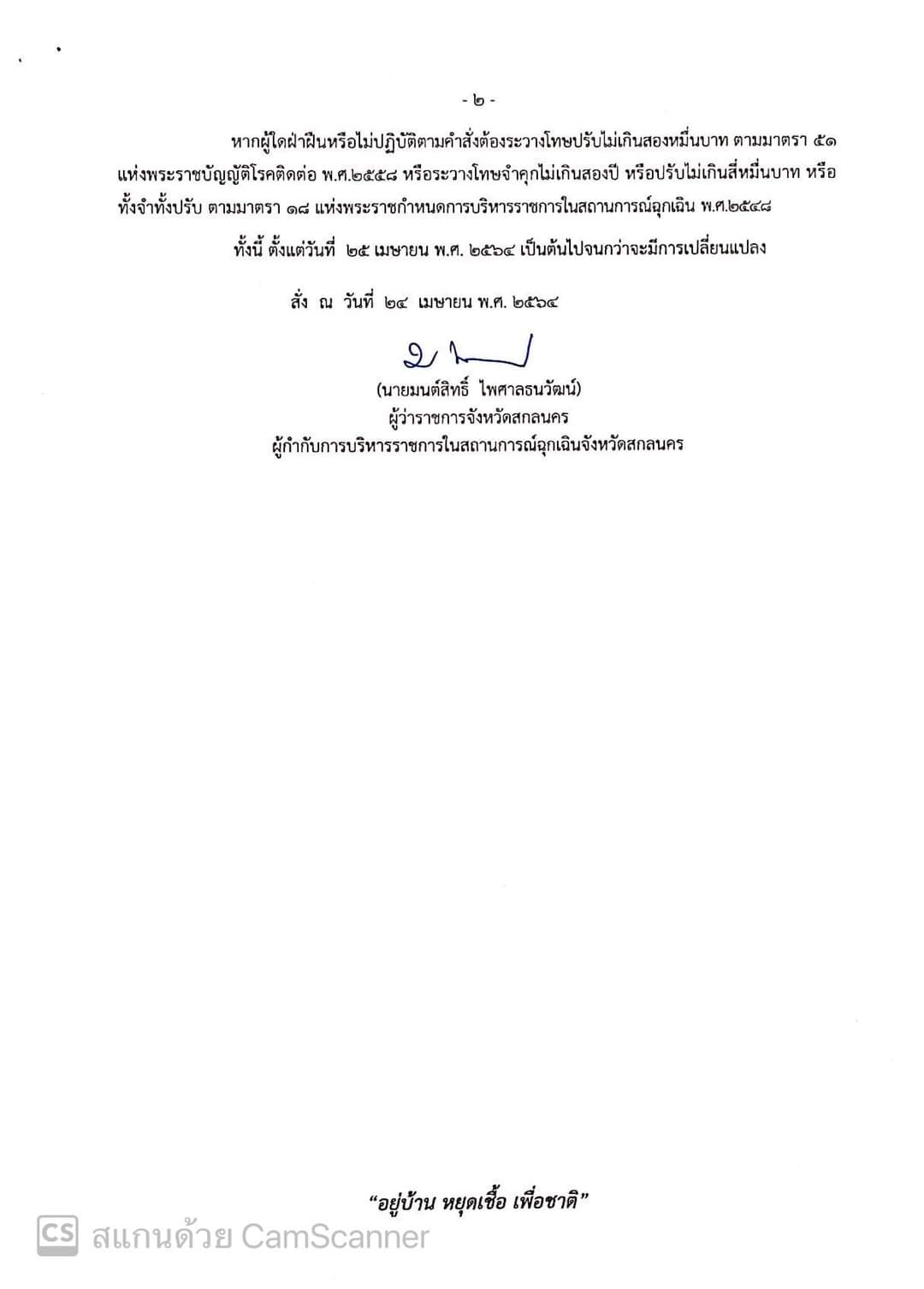 ชื่อเรื่อง : คำสั่งจังหวัดสกลนคร ที่ 15/2564 ลงวันที่ 24 เมษายน 2564