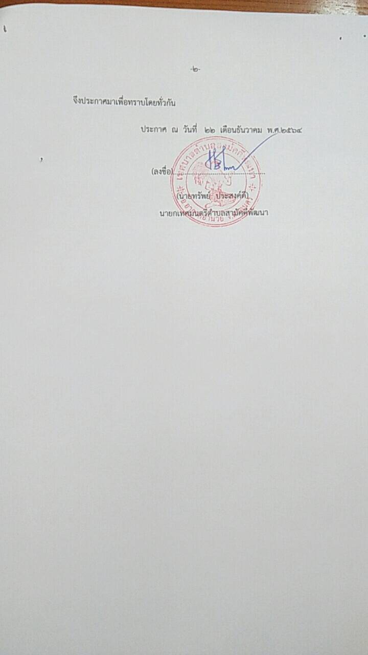 ประกาศเทศบาลตำบลสามัคคีพัฒนา เรื่อง ราคาประเมินทุนทรัพย์ของที่ดินและสิ่งปลูกสร้าง (ภ.ด.ส 1) ประจำปีงบประมาณ 2565