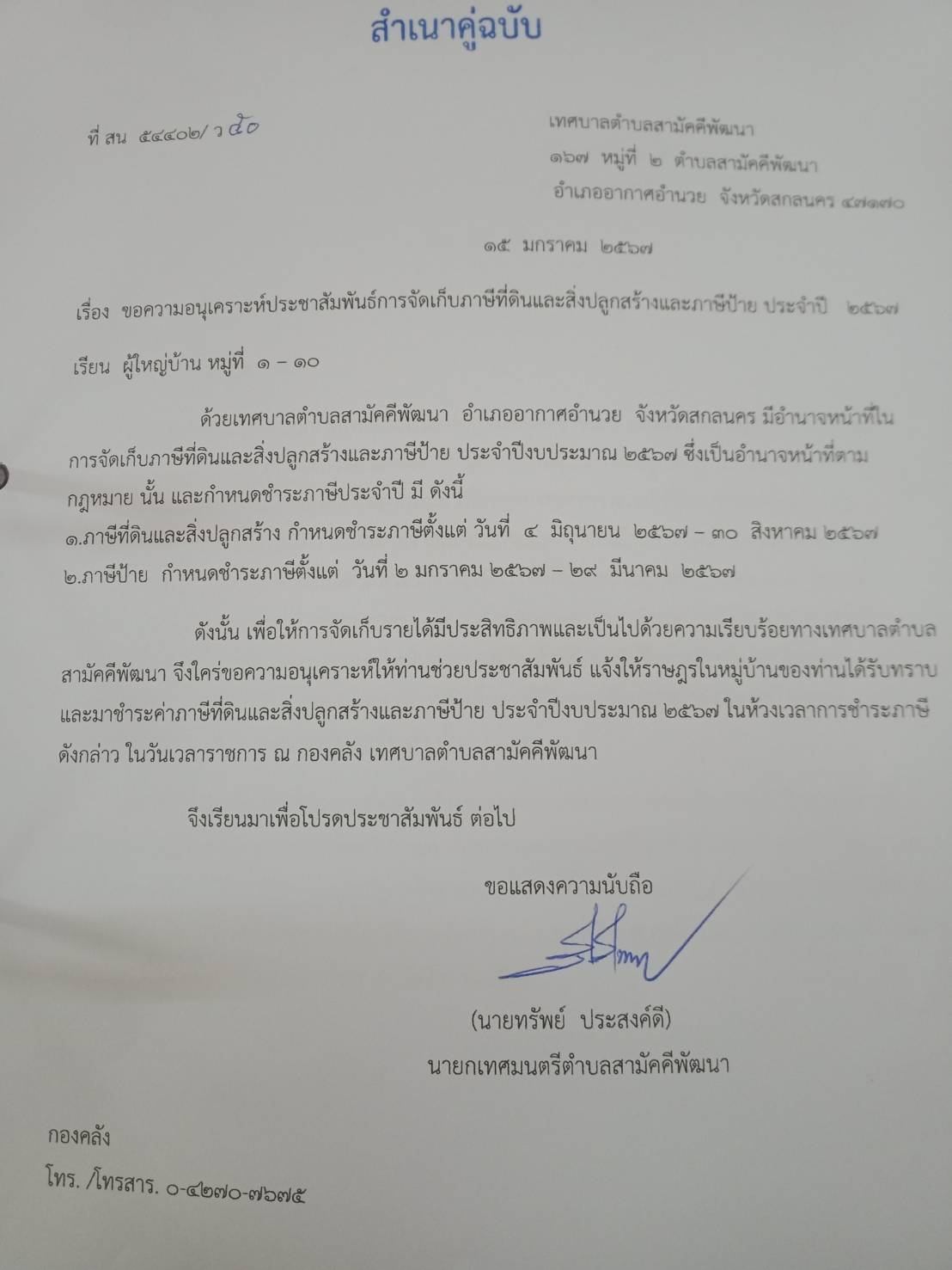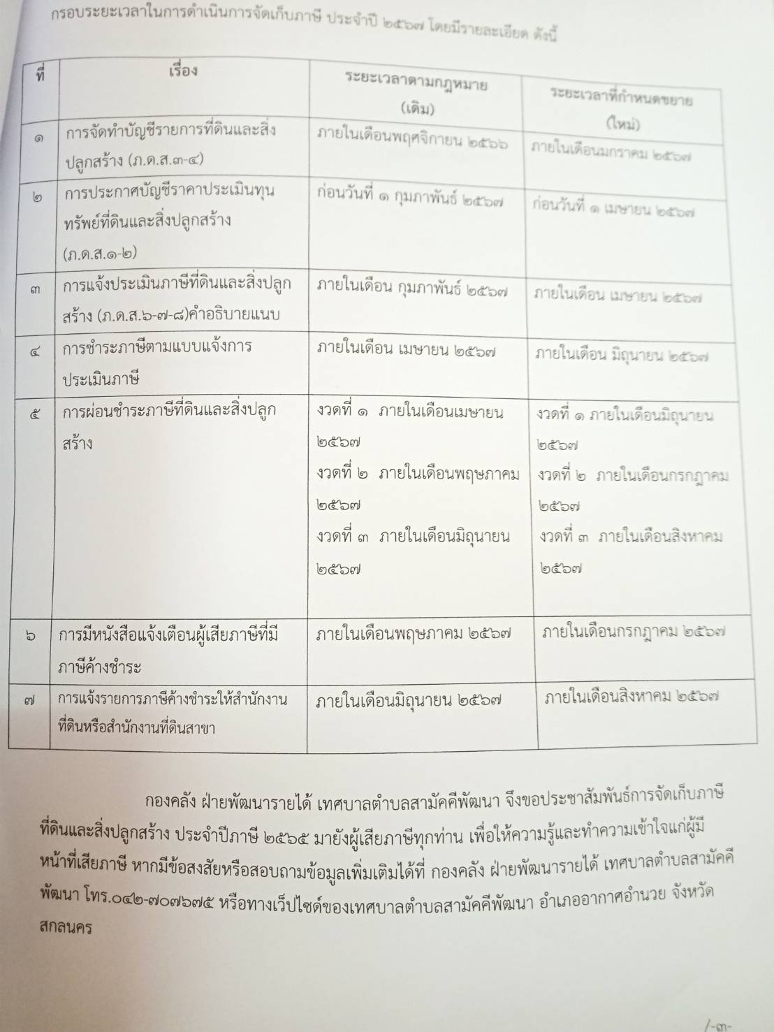 ประชาสัมพันธ์การจัดเก็บภาษีที่ดินและสิ่งปลูกสร้างและภาษีป้าย ประจำปี ๒๕๖๗