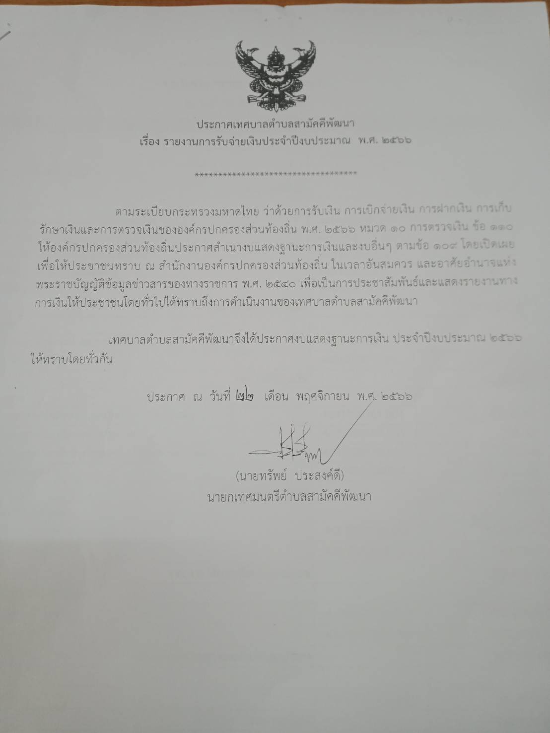 ประกาศรายงานการรับ-จ่ายเงินประจำปีงบ 66