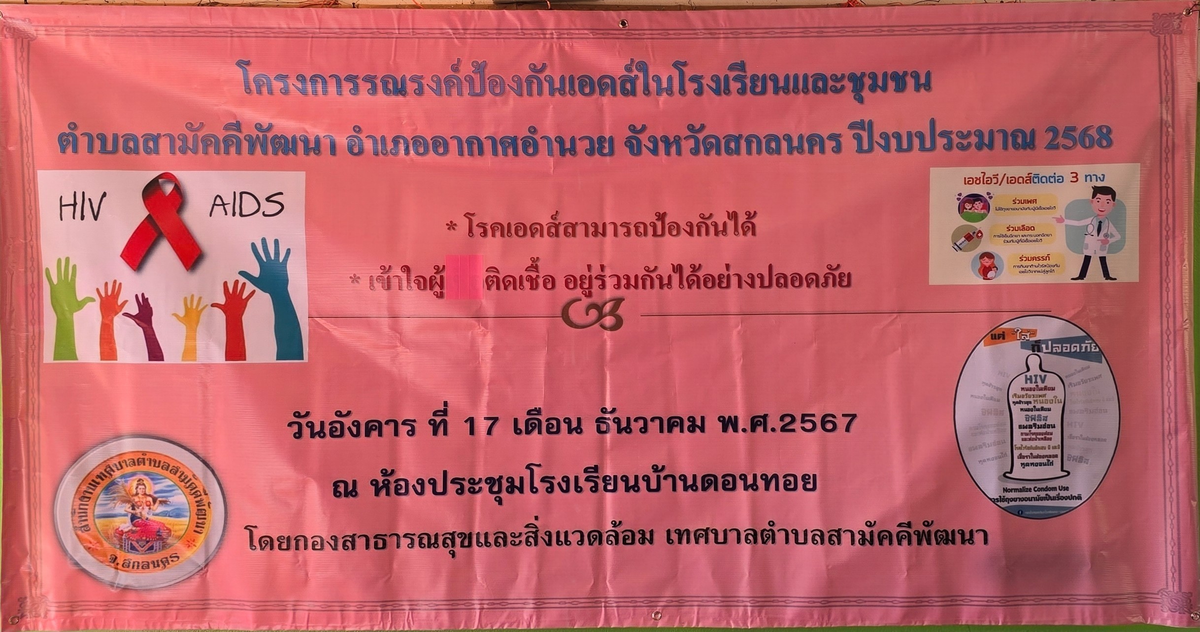 การดำเนินงานโครงการรณรงค์ป้องกันเอดส์ในชุมชน ตำบลสามัคคีพัฒนา อำเภออากาศอำนวย จังหวัดสกลนคร ปี 2568