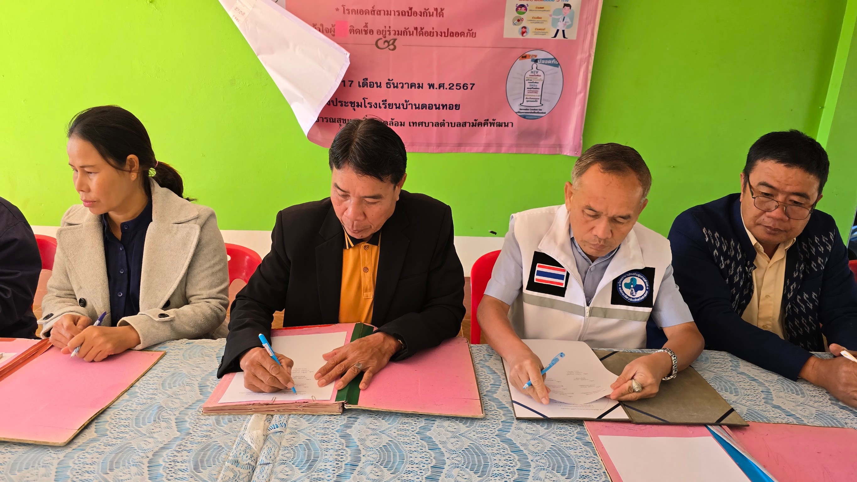 กองสาธารณสุขและสิ่งแวดล้อม เทศบาลตำบลสามัคคีพัฒนา ดำเนินงานโครงการรณรงค์ป้องกันเอดส์ในชุมชน ตำบลสามัคคีพัฒนา อำเภออากาศอำนวย จังหวัดสกลนคร ปี 2568 โดยจัดอบรมให้ความรู้เรื่องโรคเอดส์และลงนามบันทึกข้อตกลงการบริโภคผลิตภัณฑ์ยาสูบ แก่ ผู้นำชุมชน อสม. ผู้ปกครอง และนักเรียน โดยบูรณาการร่วมกัน ระหว่างหน่วยงาน อปท. รพ.สต.และโรงเรียน เมื่อวันที่ 17 ธันวาคม 2567 ณ โรงเรียนบ้านดอนทอย ตำบลสามัคคีพัฒนา อำเภออากาศอำนวย จังหวัดสกลนคร