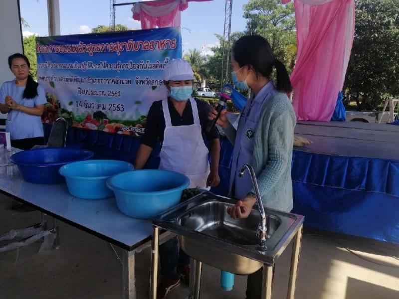 รายละเอียด : วันที่ 14 ธันวาคม 2563 กองสาธารณสุขและสิ่งแวดลอ้มเศบาลตำบลสามัคคีพัฒนา ได้ดำเนินโครงการอบรมหลักสูตรการสุขาภิบาลอาหาร ภายใต้โครงการอบรมเชิงปฏิบัติการให้ความรู้การป้องกันโรคติเชื้อ เทศบาลตำบลสามัคคีพัฒนา อำเภออากาศอำนวย จังหวัดสกลนคร ปีงบประมาณ 2564 กลุ่มเป้าหมายผู้ประกอบกิจการด้านอาหารและผู้สัมผัสอาหารจำนวน 97 คน มีผู้เข้าร่วมโครงการทั้งสิ้น 103 คน