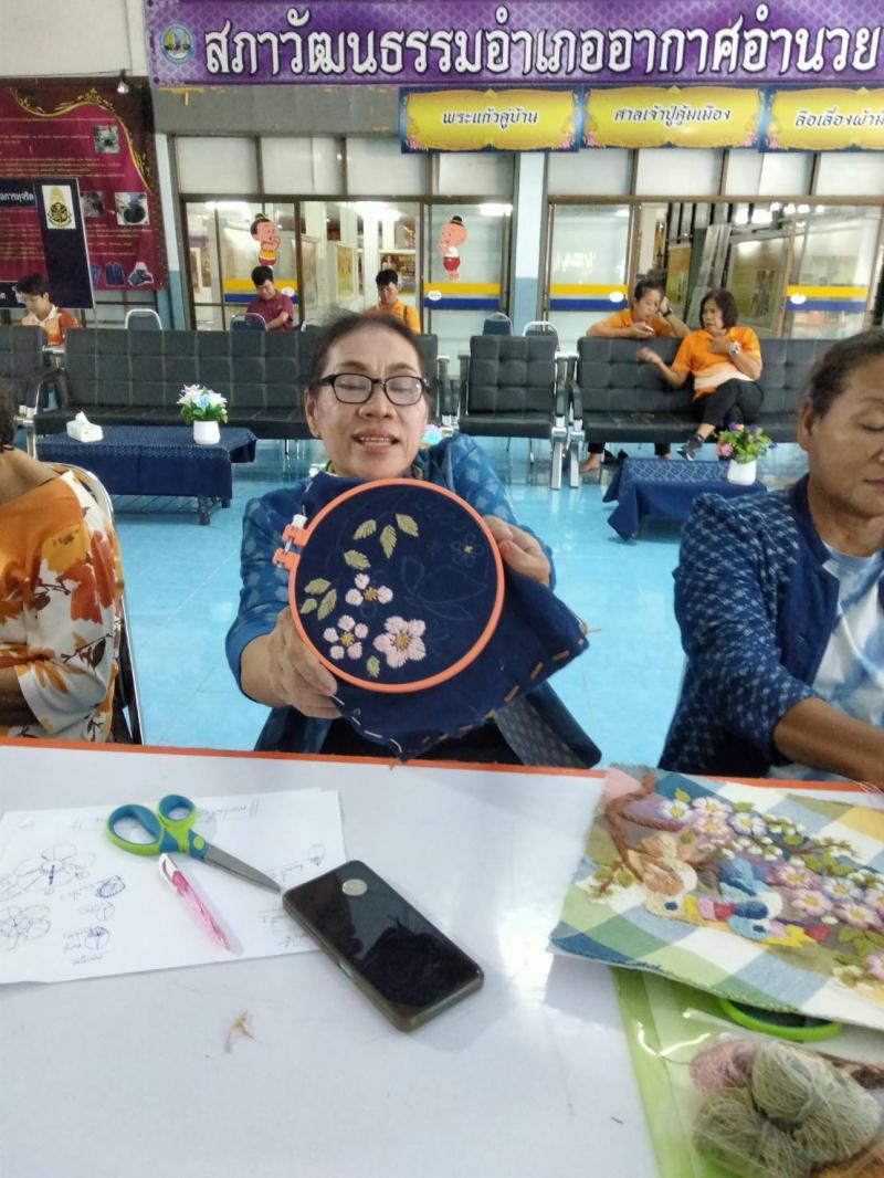 โครงการฝึกอบรมอาชีพแก่ประชาชน การปักลวดลายบนผืนผ้าคราม