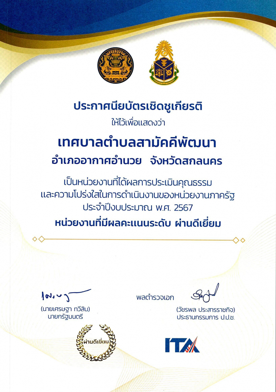 ยินดีต้อนรับ เข้าสู่เว็บไซต์ เทศบาลตำบลสามัคคีพัฒนา อำเภออากาศอำนวย จังหวัดสกลนคร