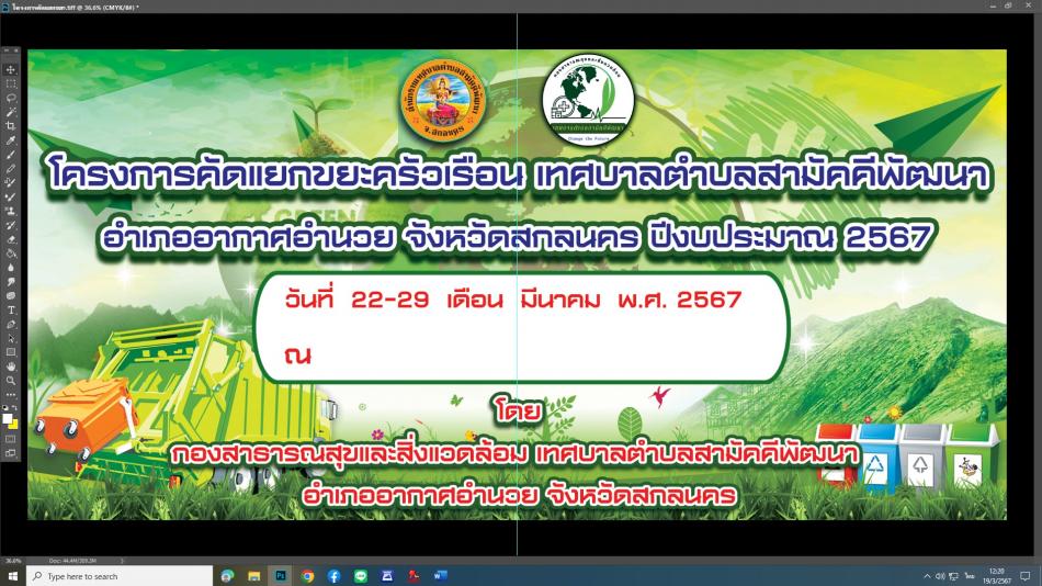 โครงการคัดแยกขยะครัวเรือน เทศบาลตำบลสามัคคีพัฒนา อำเภออากาศอำนวย จังหวัดสกลนคร ปีงบประมาณ 2567 [19 มีนาคม 2567]
