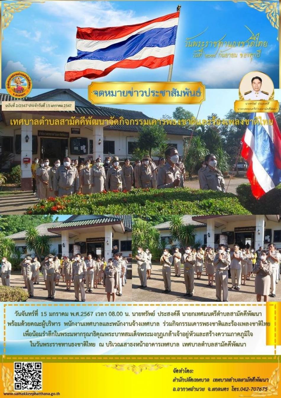 เทศบาลตำบลสามัคคีพัฒนาจัดกิจกรรมเข้าแถวเคารพธงชาติ [15 มีนาคม 2567]