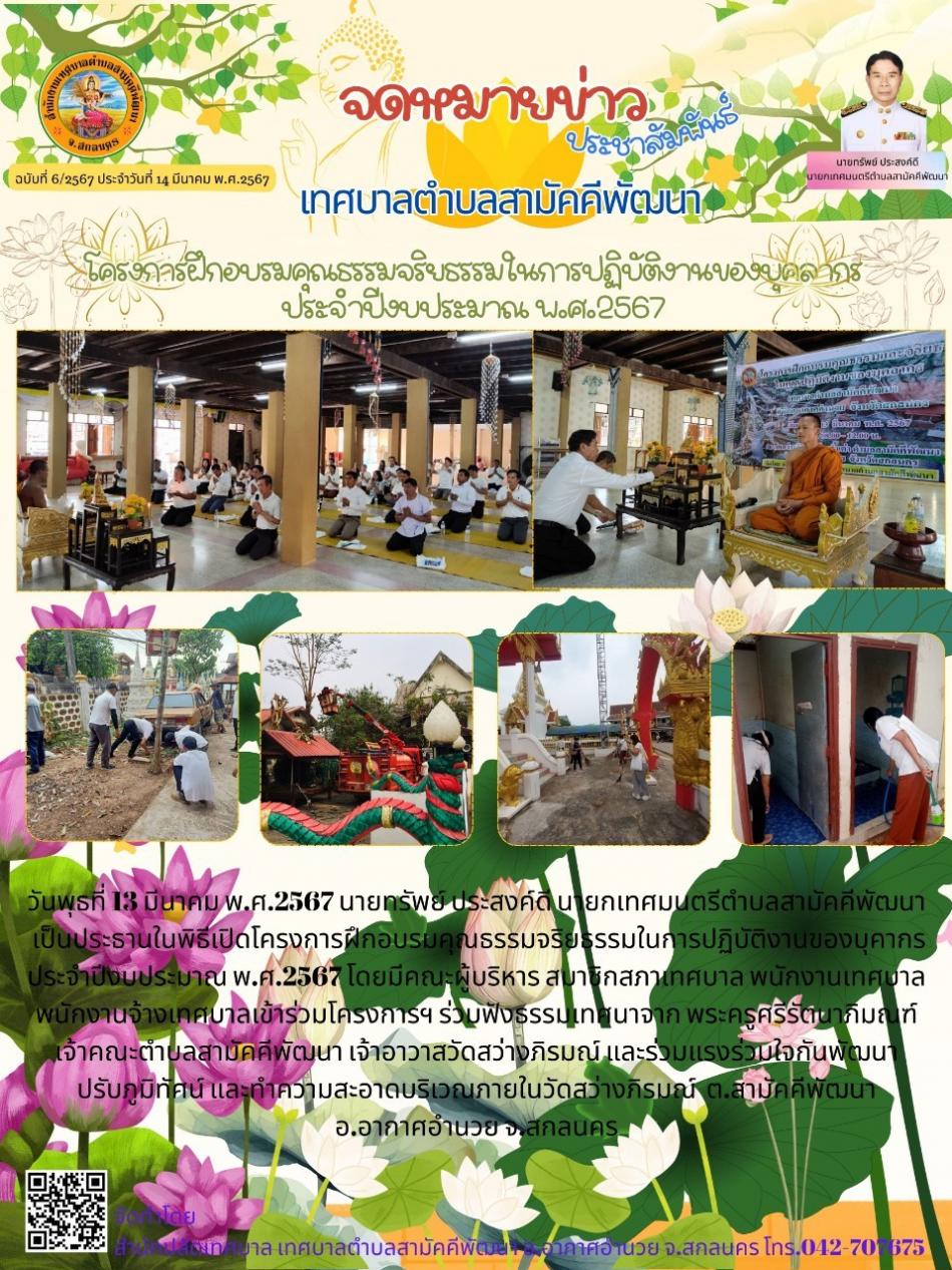 โครงการฝึกอบรมคุณธรรมจริยธรรมในการปฏิบัติงานของบุคลากร ประจำปีงบประมาณ พ.ศ.2567 [13 มีนาคม 2567]